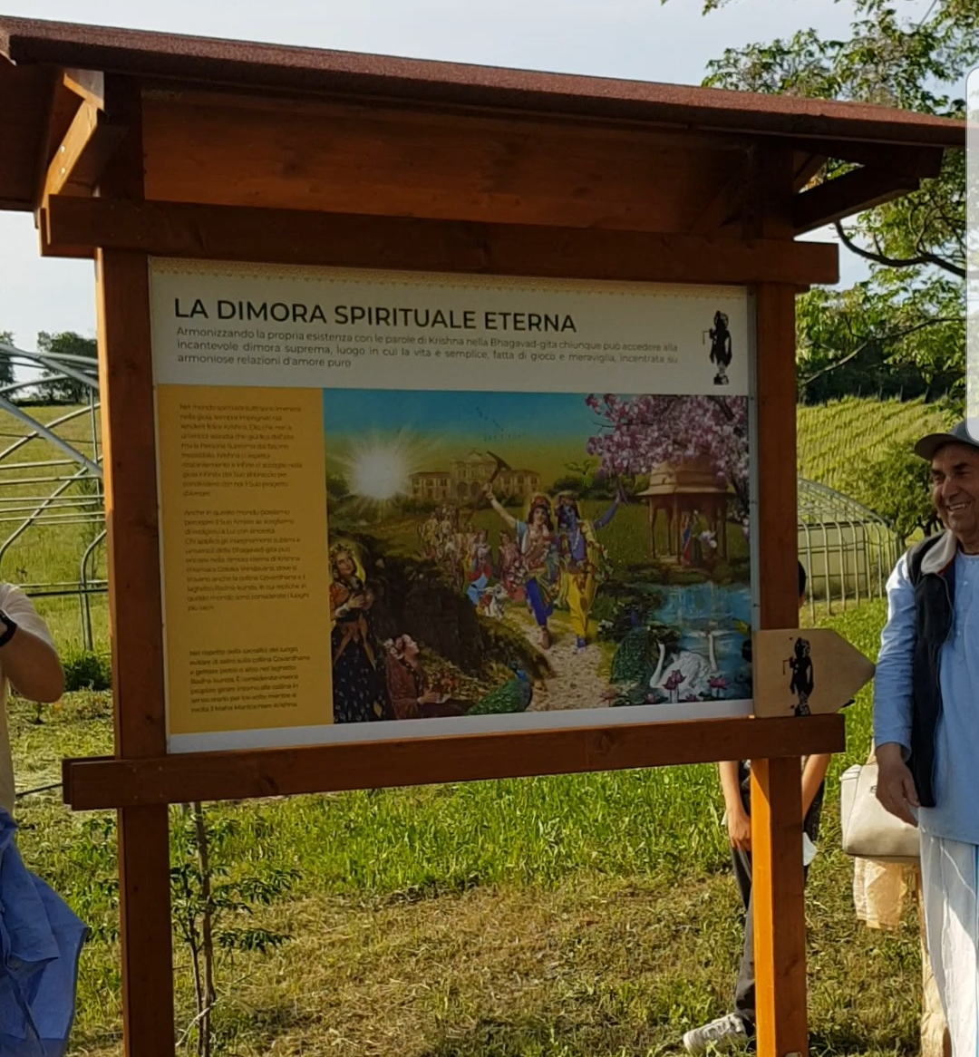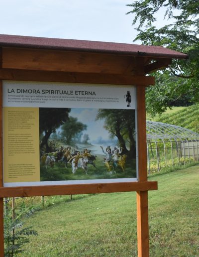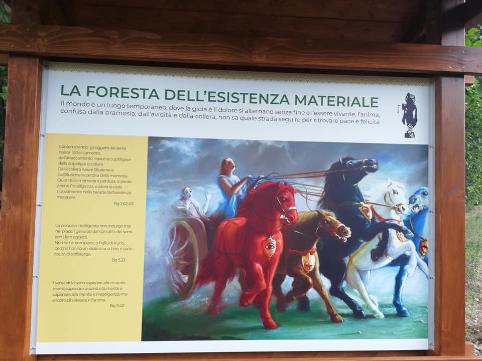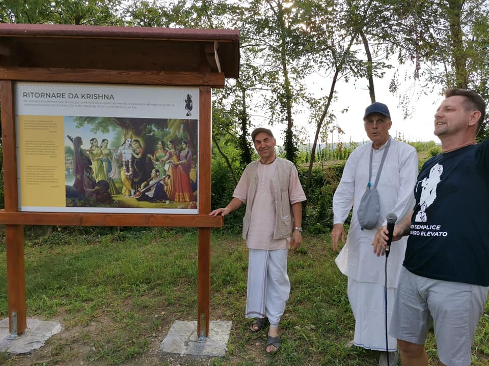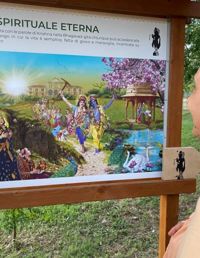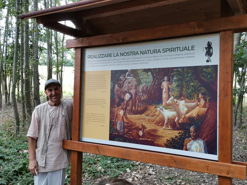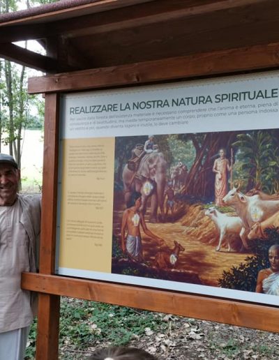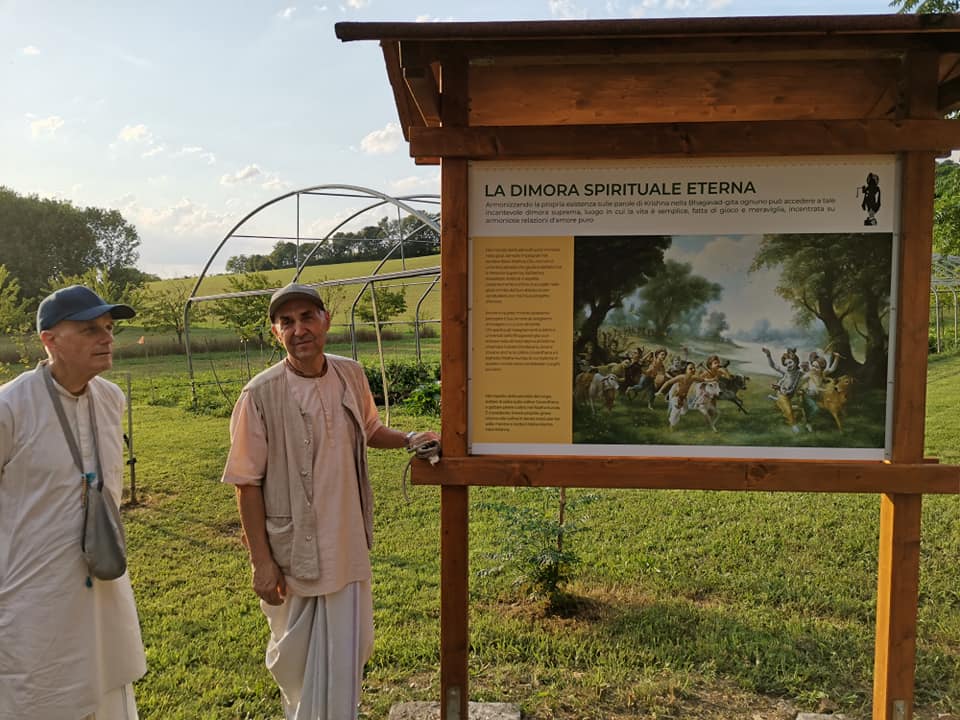 È una passeggiata meditativa alla ricerca della Verità nell’incantevole tenuta di Prabhupada desh, un sentiero ad anello da percorrere in senso orario, dove meditare sulle parole di Krishna in cinque stazioni numerate lungo il percorso arricchite da ispiranti dipinti.
