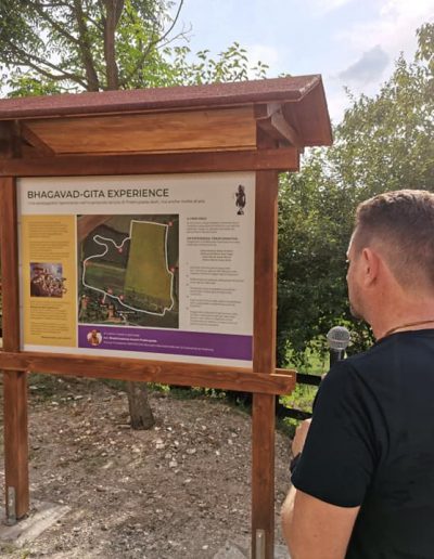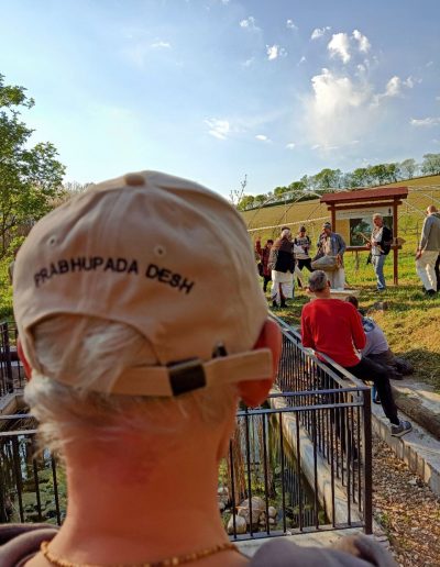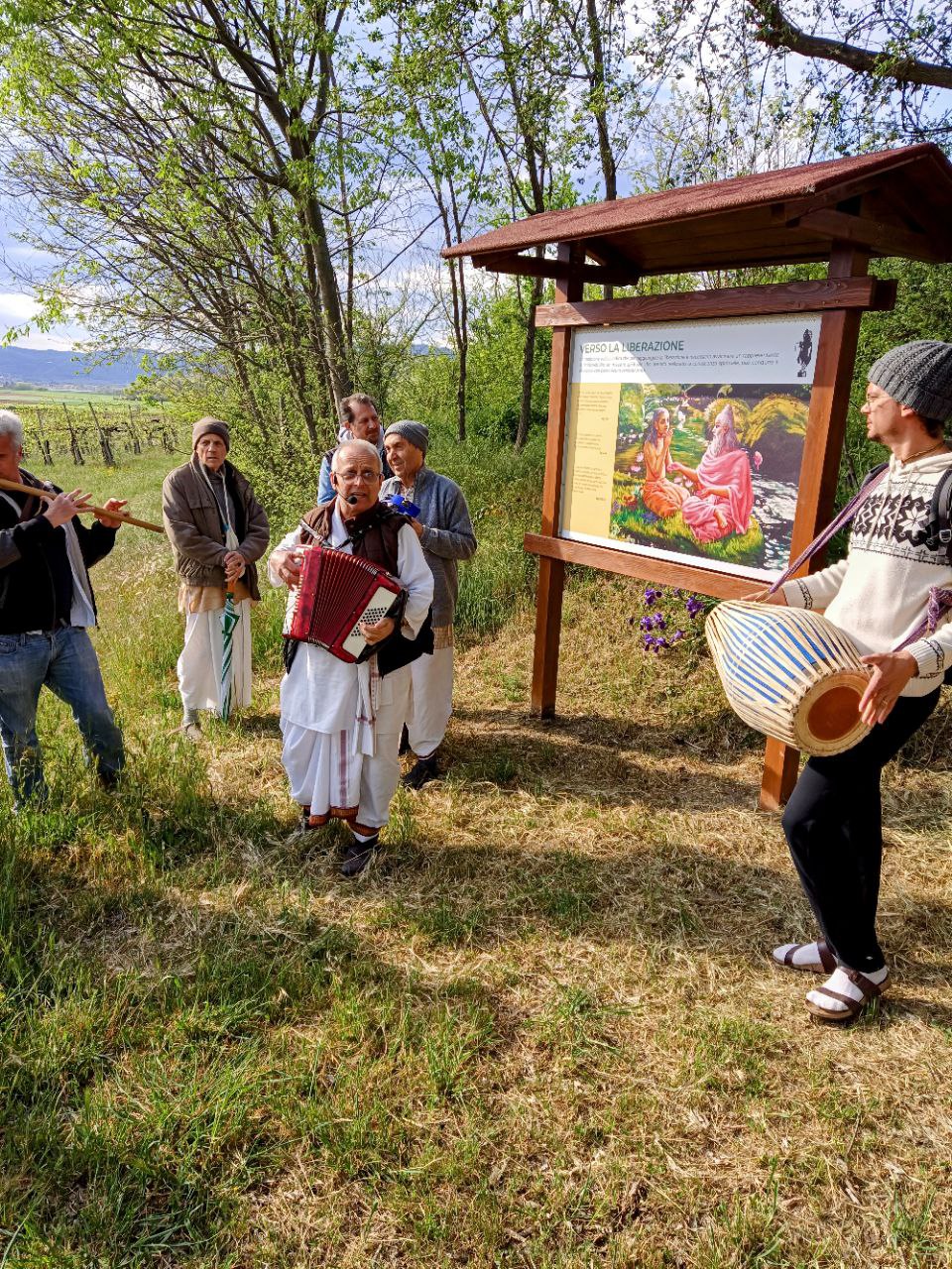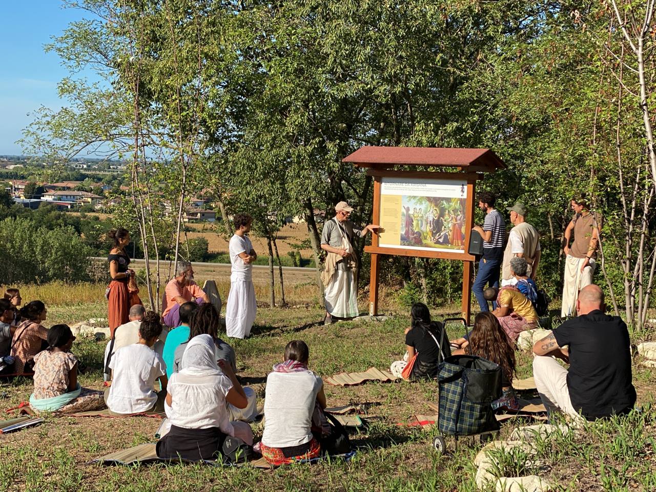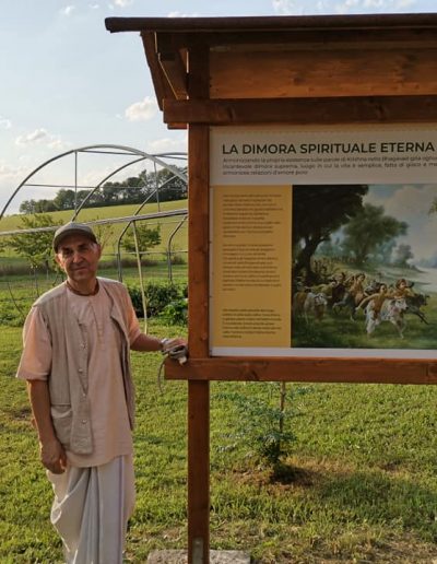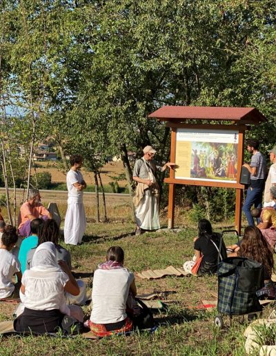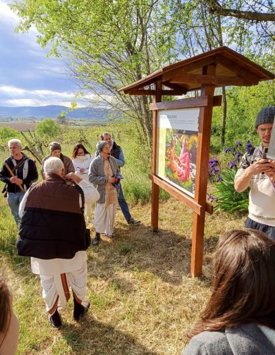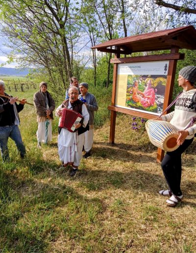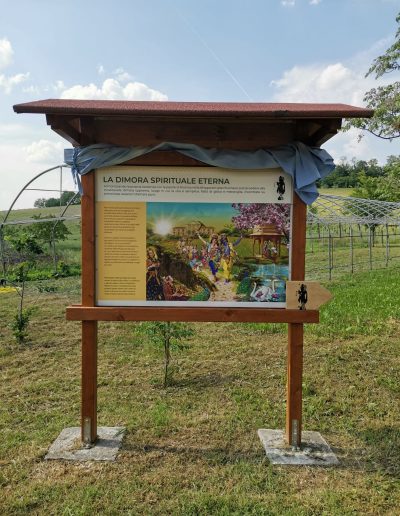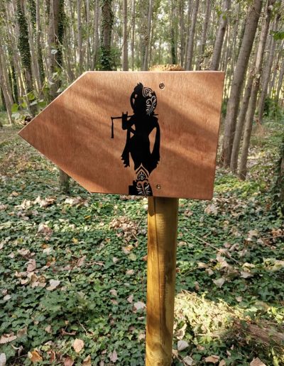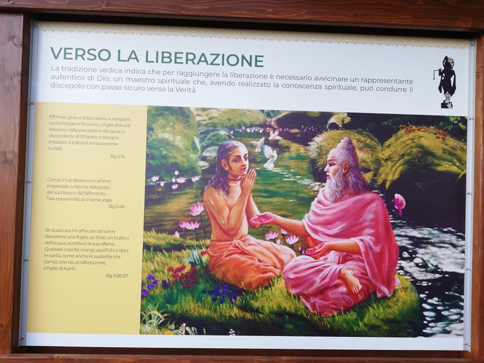 È una passeggiata meditativa alla ricerca della Verità nell’incantevole tenuta di Prabhupada desh, un sentiero ad anello da percorrere in senso orario, dove meditare sulle parole di Krishna in cinque stazioni numerate lungo il percorso arricchite da ispiranti dipinti.
