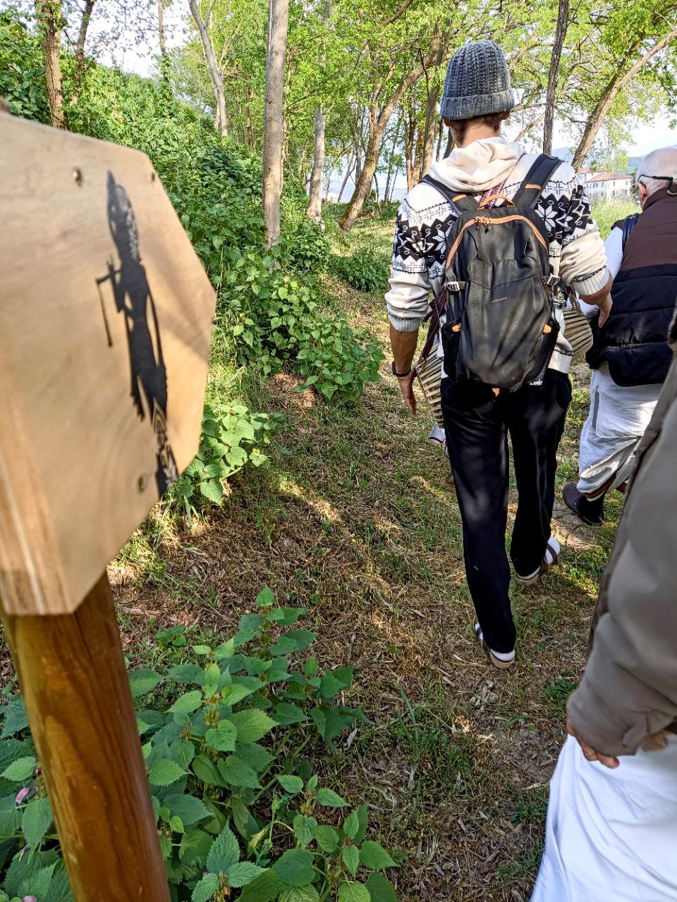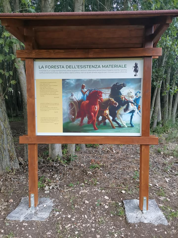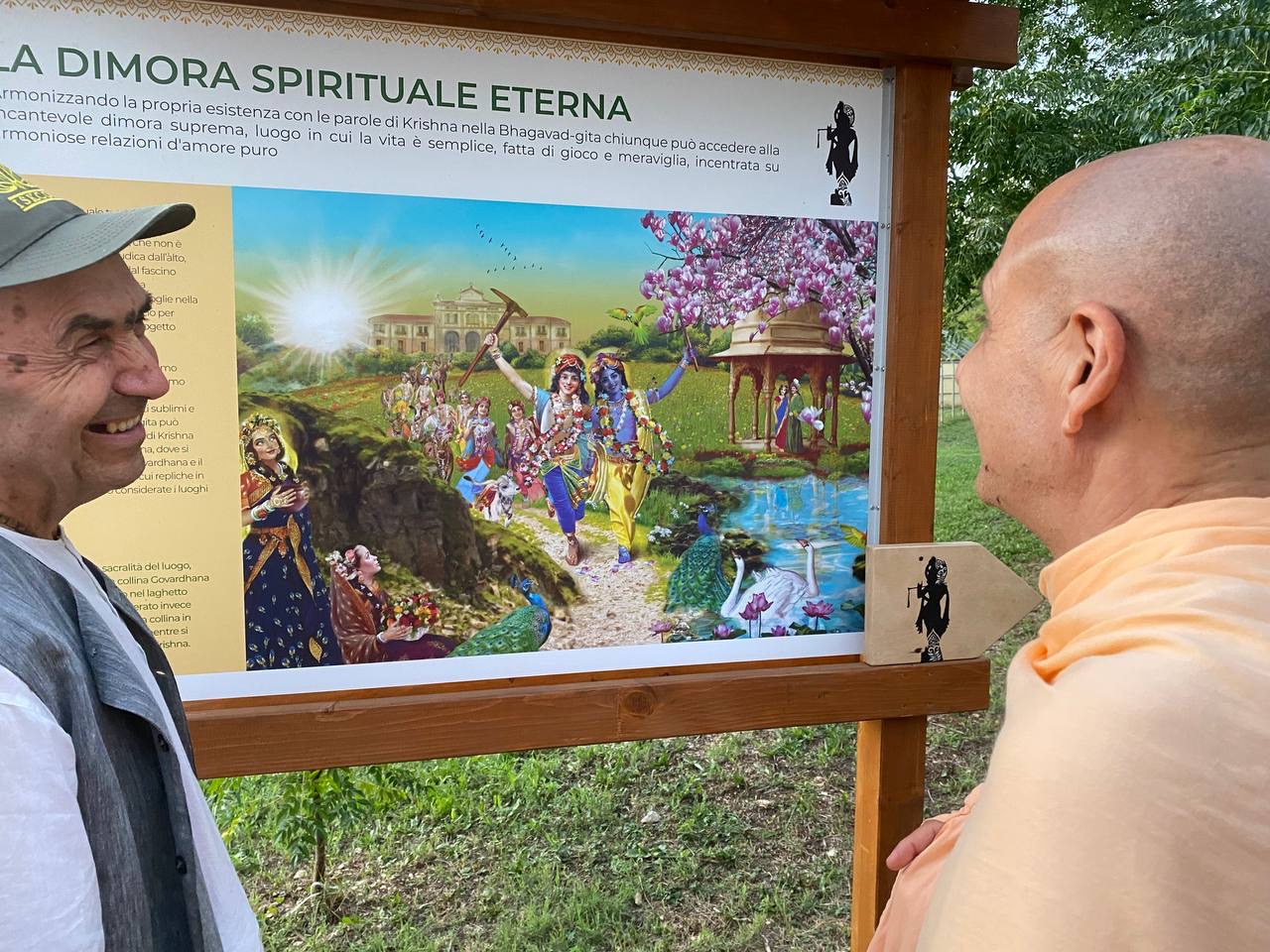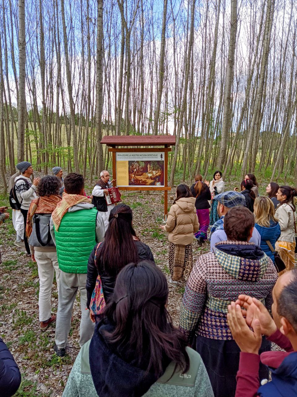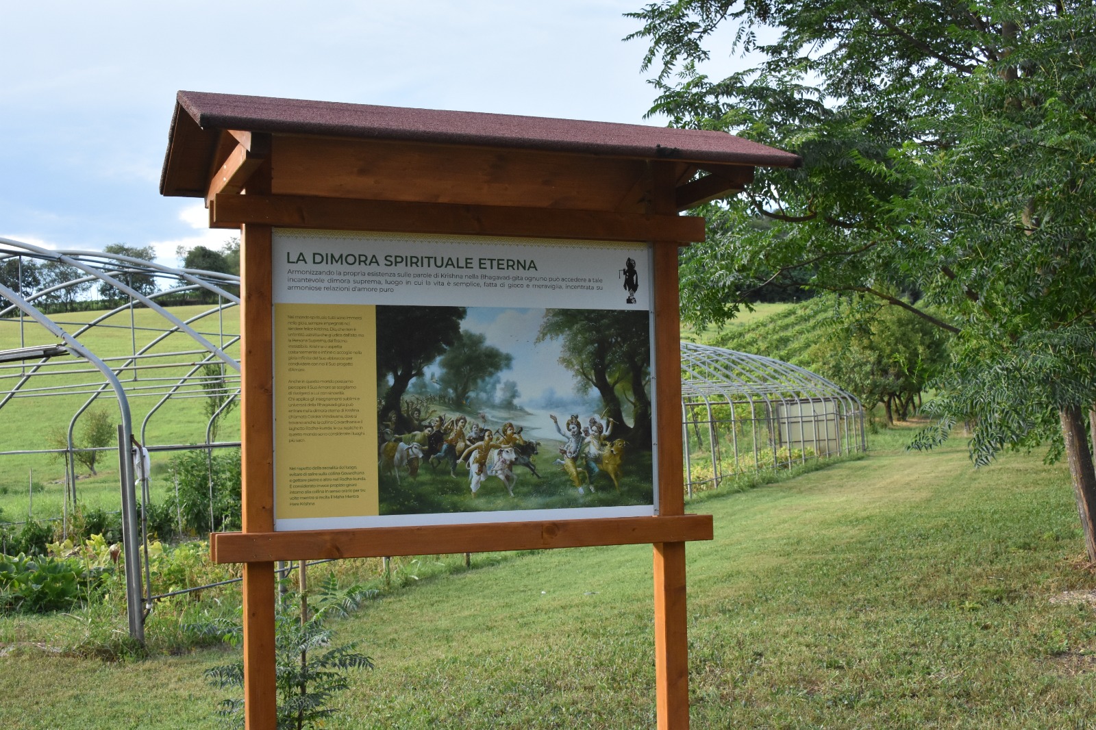 È una passeggiata meditativa alla ricerca della Verità nell’incantevole tenuta di Prabhupada desh, un sentiero ad anello da percorrere in senso orario, dove meditare sulle parole di Krishna in cinque stazioni numerate lungo il percorso arricchite da ispiranti dipinti.