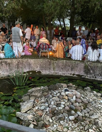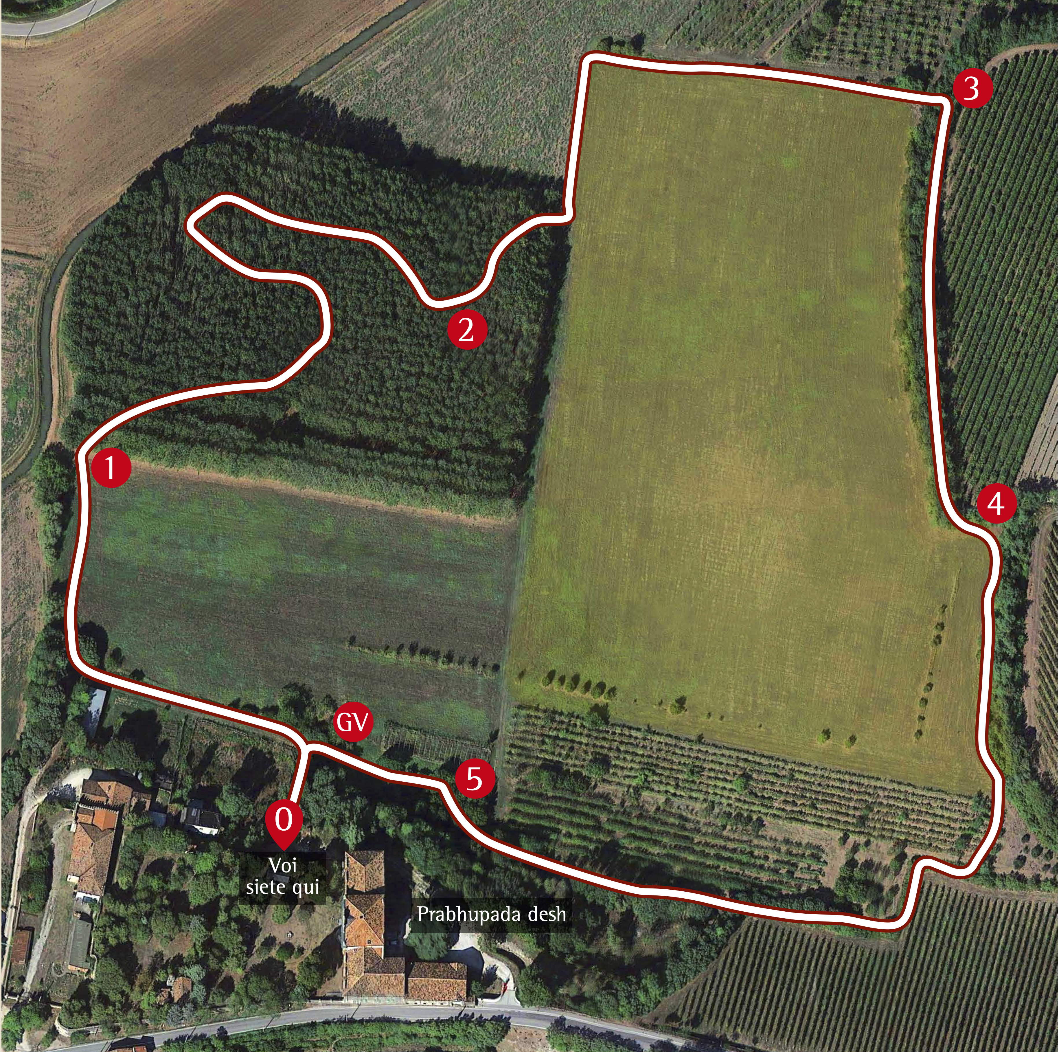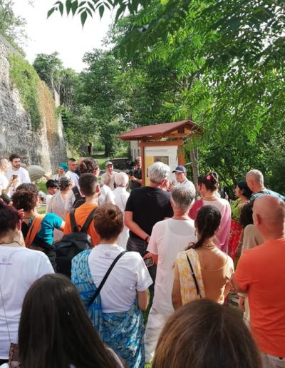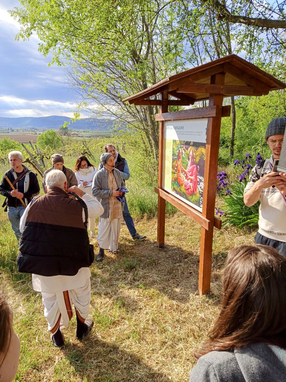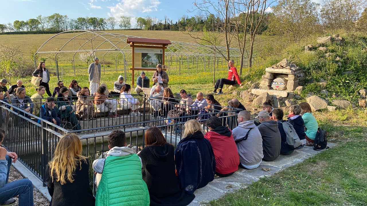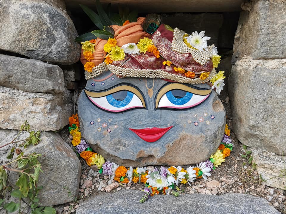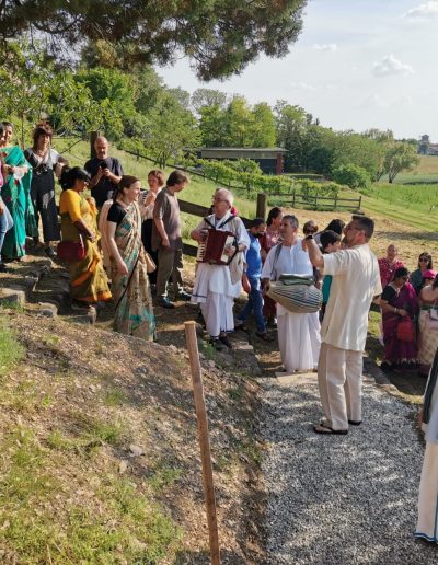 È una passeggiata meditativa alla ricerca della Verità nell’incantevole tenuta di Prabhupada desh, un sentiero ad anello da percorrere in senso orario, dove meditare sulle parole di Krishna in cinque stazioni numerate lungo il percorso arricchite da ispiranti dipinti.