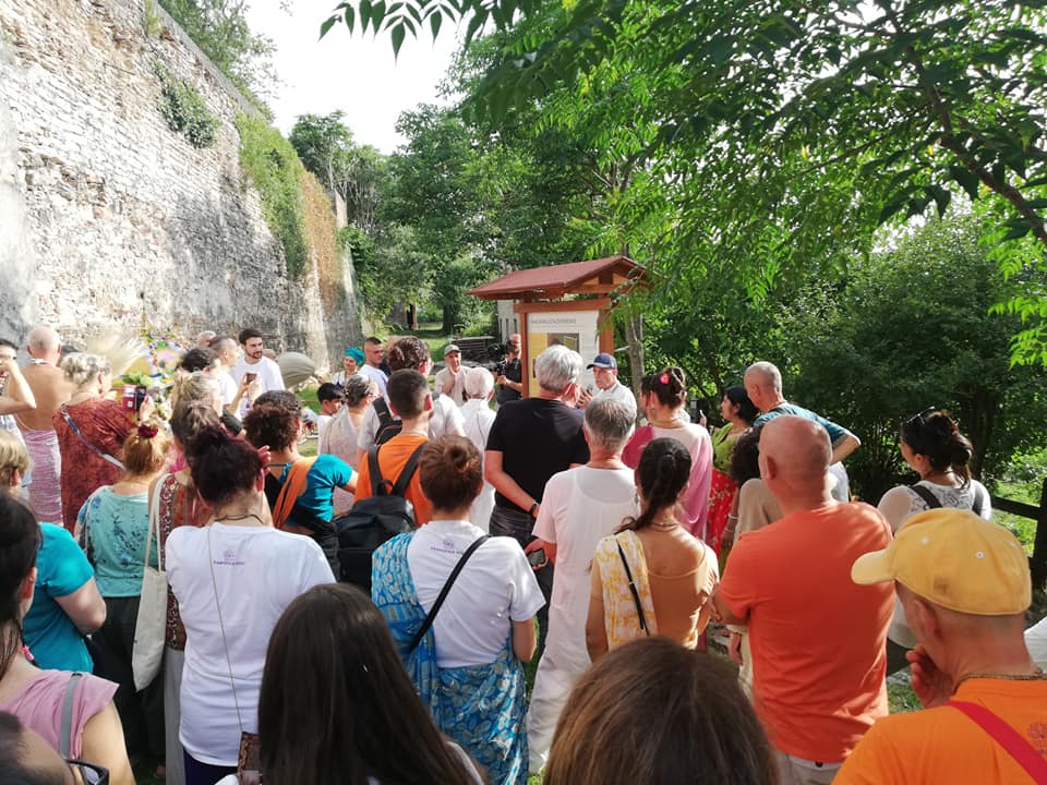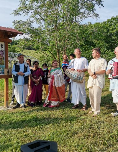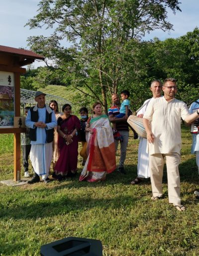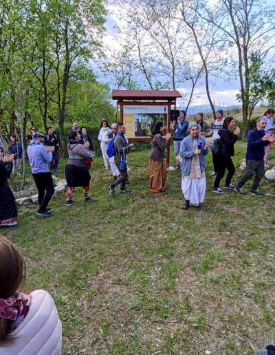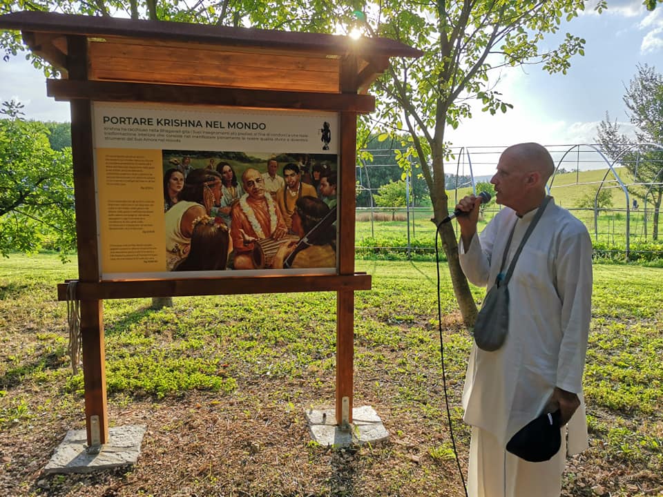 iniziare la passeggiata recitando il primo giro di Japa Mala (l’intero Maha Mantra su ognuno dei 108 grani del rosario) e si raggiungerà così la prima stazione;