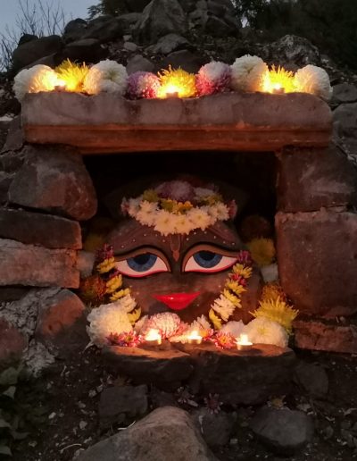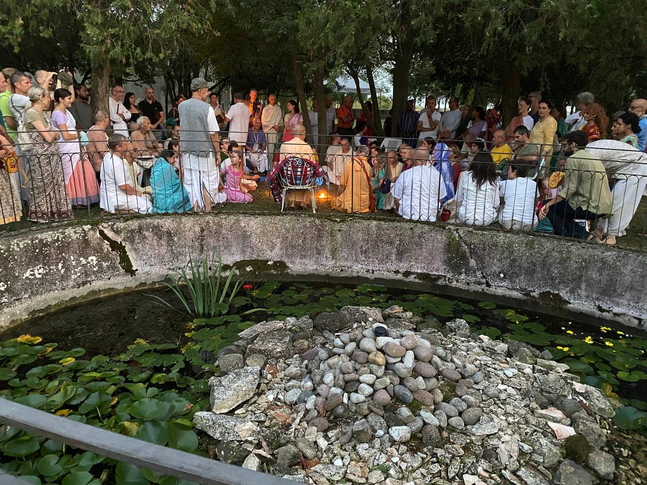 Suggeriamo di effettuare il percorso ad anello per tre volte, recitando il Maha Mantra: